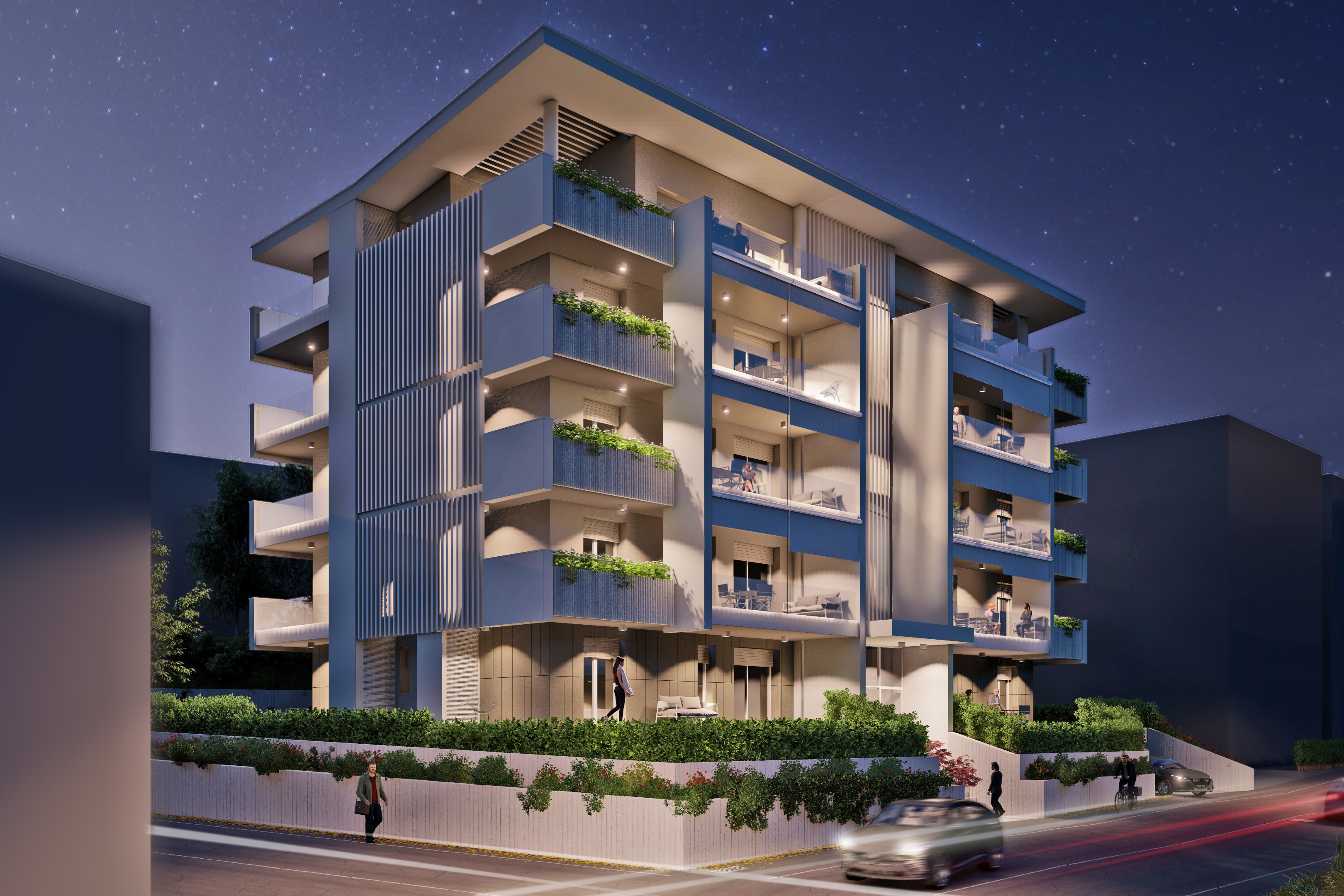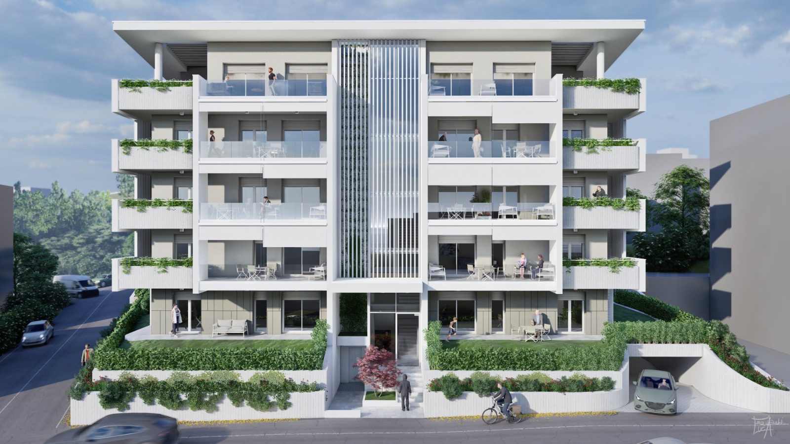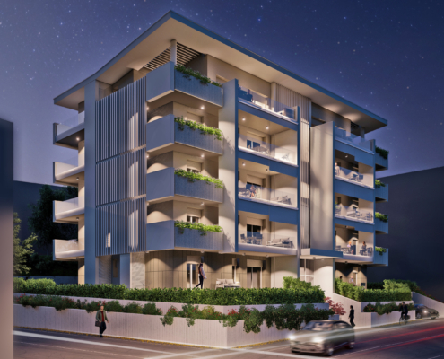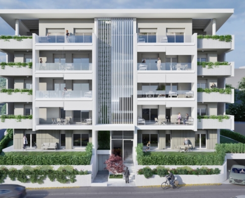 Tutti gli appartamenti saranno serviti da loggia e balcone o scoperto e giardino privato per i piani terra.
